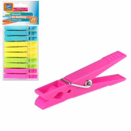 W skład zestawu wchodzi 20 sztuk klamerek w atrakcyjnych, dobrze dobranych kolorach.