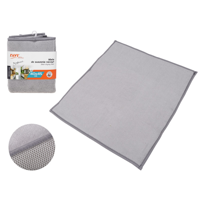 Niezbędna w każdej kuchni, wyjątkowo chłonna i praktyczna mata przeznaczona do suszenia naczyń. Po użyciu należy odcisnąć wodę oraz wysuszyć w stanie rozwieszonym.