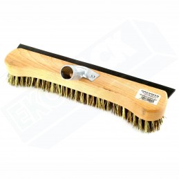 Drewniana szczotka z mocnym i sprężystym włosiem. Świetnie się sprawdzi zarówno w ogrodzie, na placach czy halach przemysłowych. Dodatkowo szczotka posiada ściągacz pomocny przy sprzątaniu rozlanej wody, napojów itd.