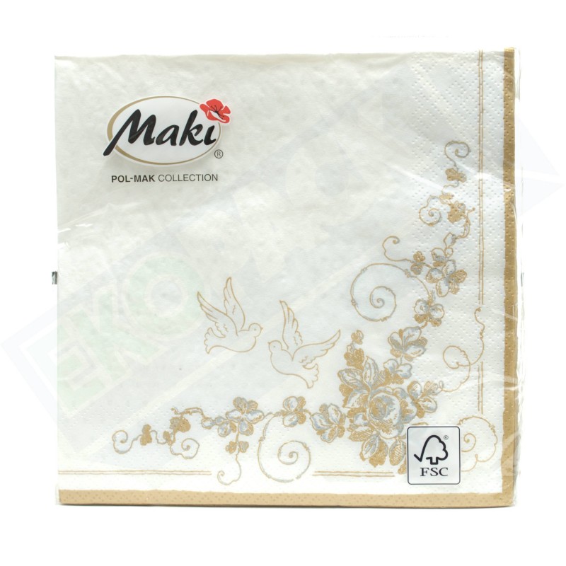 Serwetka składana z kolorowym nadrukiem to idealny sposób na udekorowanie weselnego stołu bez większych nakładów finansowych. Jest modnym i miłym dodatkiem w każdej jadalni oraz zapewnia estetyczny i elegancki wygląd. Wzór wysyłamy losowo w zależności od dostępności.