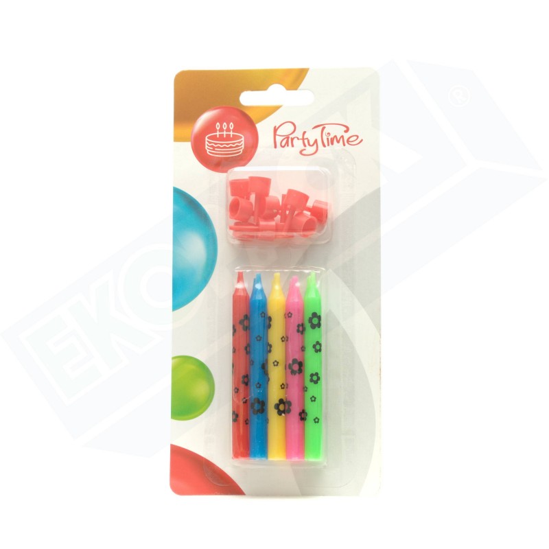 Kolorowe świeczki do dekoracji tortu Wysokość świeczki 8 cm Opakowanie zawiera 10 świeczek z podstawkami