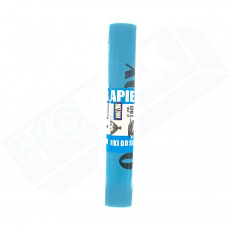 Mocne worki przeznaczone do segregacji odpadów papierowych o pojemności 120l, wykonane z folii LDPE.