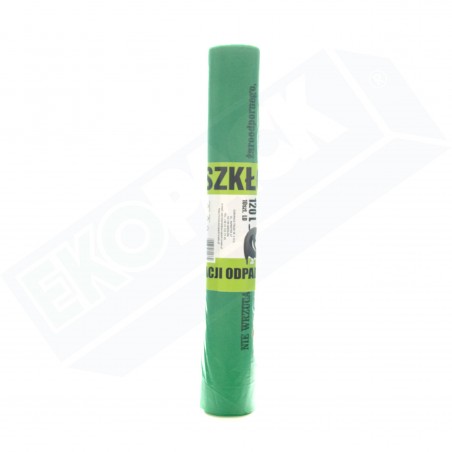 Mocne worki przeznaczone do segregacji odpadów szklanych o pojemności 120l, wykonane z folii LDPE.